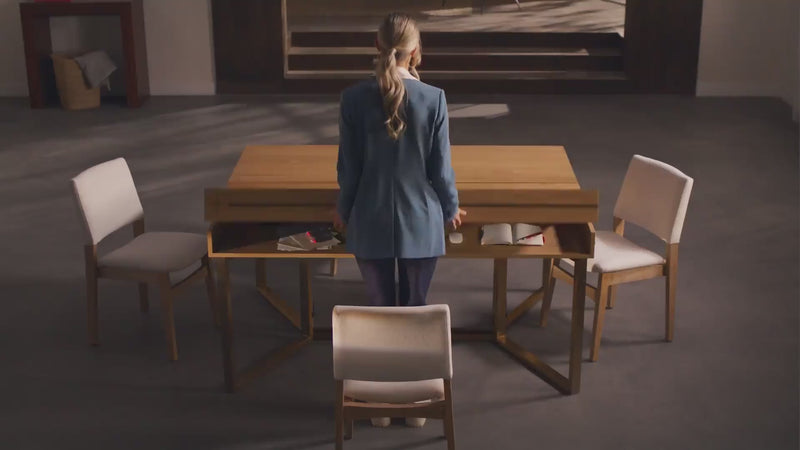 At a moment’s notice, close up the flip-top mechanism and comfortably seat your guests with the ergonomic design of The Savouring Table, ready to accommodate 6 dining chairs.